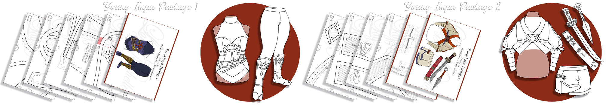 For this warrior, I used Beige Blackout fabrics on the coat and Scuba Suede Mesh on the red details, on the leggings I used Suplex Polyamide and on the blue bodice I used Bengaline.