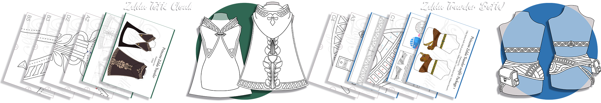 For the cloak, I used Bengaline and Scuba Suede fabric in the light details, both are very full-bodied and heavy fabrics thinking about the firm frame that would hood would get, since it appears to be well armed.